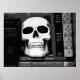Schwarz-Weiß-Bild eines Schädels, der an seiner Stelle im Regal sitzt