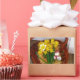 Ein Körbchen mit gelben Eizellen und blumengeschmü Rechteckiger Aufkleber
