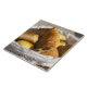 Ein Korbfrühstück mit Croissants und Fliese