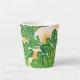 Ein künstlerisches Muster in Grün und Gold, das ei Milchtasse