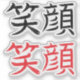 Niedliche Aufkleber mit dem japanischen Wort zum Lächeln des Gesichts. Sie können die Farbe des Wortes im Bildbearbeitungsprogramm ändern.