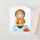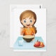 Ein lächelndes Mädchen, das ihr Frühstück isst Postkarte