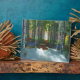 Ein Waldspaziergang durch die Jahreszeiten, vom Winterschnee, über Frühlingsbläuchen und Azaleen, über Sommer-Grün und Klee, bis zu den hellen Gelben und Orangen der Herbstblätter, und zurück zum Schnee. Ein leuchtend roter Herbstbaum markiert das Ende der Perspektive wieder zurück in den Winter.