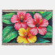 Tauchen Sie mit diesem atemberaubenden Kunstwerk in eine Welt voller Farben und exotischer Schönheit ein. Dieses faszinierende Design, das eine einzigartige Zusammenarbeit zwischen fortgeschrittener KI und einem erfahrenen Künstler darstellt, zeichnet sich durch einen strahlenden Hibiskus-Blumenstrauß und üppige Blätter aus. Der blühende Pop mit rosa, roten und gelben Blumen vor einem dunklen Hintergrund schafft ein gewagtes und tropisches Meisterwerk. Dieses Stück ist perfekt, um das Wesen des Sommers und ein ruhiges Inselparadies in jeden Stil zu bringen. Es ist ein Zeugnis für die nahtlose Verbindung von Technik und künstlerischem Flair. Es ist eine schöne Feier der schönsten Flora der Natur.