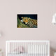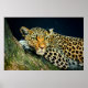 Schöne Fotografie mit einer künstlerisch verbesserten Nahaufnahme eines Leoparden, der in einem Baum mit Nachthimmel ruht.