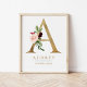 Ein Letter Monogram Name Marsala Floral Kinderzimm Poster