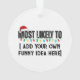 Suchen Sie lustige, sonderbare und personalisierte Weihnachtsgeschirr? Unser Vorlagentext "Most Lighely To" ist genau das, was Sie brauchen! Sie können das Design auf trendige T - Shirt übertragen, um Reisebügel und Aufkleber zu transportieren. Diese Kollektion ist ideal, um Ihre einzigartige Atmosphäre zu zeigen. Hier sind viele Ideen enthalten, um Ihre kreativen Säfte zum Laufen zu bringen. Perfekte Geschenkideen für Freunde, Familie, Chef, Mitarbeiter, Kollegen, Lehrer, Kinder, Erwachsene, Mütter, Väter und mehr! Egal, ob Sie "höchstwahrscheinlich zu spät in die Klasse", "am wahrscheinlichsten bei Brunch zu finden" oder sogar "am ehesten ein Nickerchen überall zu nehmen" sind, wir haben für Sie den passenden Artikel got. Mit beliebten Designs wie "Am wahrscheinlichsten bei Trivia zu gewinnen", "Am wahrscheinlichsten, Snacks zu bringen" und "Am wahrscheinlichsten bei Viral" geht es in dieser Sammlung um das Feiern der lustigen, relationalen Momente, die Sie, naja.. Sie! Machen Sie sich bereit, Ihre Persönlichkeit mit Stil zu reppen - egal wohin Sie gehen! Mehr Spaß beim Thema "höchstwahrscheinlich zu": "Am wahrscheinlichsten startet man ein Tanz-Party", "am wahrscheinlichsten bei der Bestellung", "am wahrscheinlichsten wird das Leben des Party sein", "am wahrscheinlichsten wird eine Serie von Binge-Watch", "am wahrscheinlichsten, ein Selfie zu nehmen", "am meisten Wahrscheinlich vergessen ihre Keys", "am wahrscheinlichsten, dass sie ins Lied brechen", "am wahrscheinlichsten, dass sie Pajamas den ganzen Tag tragen", "am wahrscheinlichsten auf einer spontanen Straßenreise", "am wahrscheinlichsten, einem Vater Witze zu erzählen", "am wahrscheinlichsten, Filme zu zitieren", "am wahrscheinlichsten, dass sie sich in Mode kommen", "am meisten wahrscheinlich, Wahrscheinlich zu viele Pflanze zu besitzen", "am ehesten den ganzen Kaffee trinken", "am wahrscheinlichsten durch den Alarm schlafen", "am ehesten verzögern", "am wahrscheinlichsten zu überpacken", "am wahrscheinlichsten ein Argument zu gewinnen", "am wahrscheinlichsten zum Lachen zu bringen", "am wahrscheinlichsten, jeden Hund zu füttern", "am meisten wahrscheinlich zum Lachen zu bringen" Wahrscheinlich wird es zu spät Bleibe", "am wahrscheinlichsten, dass Spielabend stattfindet", "am ehesten ein Perfektionist."