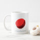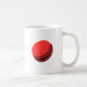 Ein lebendiges und auffälliges Bild eines roten Erdbeermakaroons mit Text in französischer Sprache. Lassen Sie sich mit Kakao, Tee oder Kaffee zu einem besonderen Erlebnis machen!