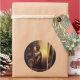 Ein Mädchen, das einen Buchstaben in einem offenen Runder Aufkleber