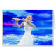 Mädchen spielen Flöte mit Ozean und Himmel digitale Kunst