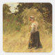 Ein Mädchen Harvesting Hay, 19. Jahrhundert Quadratischer Aufkleber