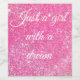 EINFACH EIN MÄDCHEN MIT EINEM DREAM funkelnden, heißen rosa lila Glitzer Weinlabel mit elegantem Weiß-Schrift.