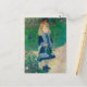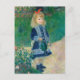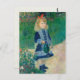 Dieses wunderschöne Ölgemälde wurde 1876 von Pierre-Auguste Renoir gemalt. Das hübsche Kind ist Mademoiselle Leclere, das ein blaues Kleid trägt und eine Wasserdose hält. Renoir war Impressionist. Sie können sehen, dass Renoir die Farben des Gemäldes nicht vermischt, sondern sie mit individuellen Touchs des Pinsels anpasste, die Kanten auflösen und mit Licht zu schimmern scheinen. (Das Design, das Sie auf der Innenseite dieser Postkarte sehen, ist ein schönes weißes Muster aus BlumenJacquard-Stoff.)