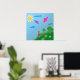 Ein Poster eines digitalen zeichnend Mädchens, das Drachen hält, die am Himmel fliegen. Der zeichn mit Blume und Bäumen auf einem grünen Hügel, wo das Mädchen in einem roten Kleid ist stehend. Die Sonne scheint am Himmel. Ideal für Mädchen.