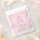 Rosa Märchen "Once Upon A Time" Baby Dusche Gefallen Taschen für ein Mädchen in Rosa und Gold, mit schönen typografischen Schnörkeln. Der Text des Skripts liest Once Upon A Time" in Gold, mit einem magischen Schloss.