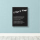 Feiern Sie den bemerkenswerten Mann, der Kraft, Freundlichkeit und unerschütterliche Unterstützung in Ihr Leben bringt mit diesem ausdrucksvollen Leinwand "Ein Mann zum Lob". Dieses elegante Schwarz-Weiß-Kunstwerk mit einem berührenden Gedicht, das Wertschätzung und Liebe schön artikuliert, ist eine zeitlose Hommage. Perfekt für den Vatertag, Geburtstage, Jahrestage oder einfach um einem Ehemann, Vater, Mentor oder einem einflussreichen Mann Dankbarkeit zu zeigen, dient es als tägliche Erinnerung seiner unschätzbaren Präsenz und Wirkung.