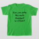 Ein Mathematikproblem bei einem grünen T - Shirt:4+2*3=? Sie können diesen T - Shirt anpassen, um ein eigenes mathematisches Problem zu schaffen. Sie können auch ändern, welche Art von T - Shirt Sie gewollt haben und welche Farbe der T - Shirt hat.