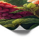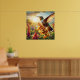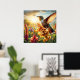 Ein lebendiges Gemälde, das einen Kolibris gefangen nimmt, der auf einer farbenprächtigen Blume zart aufragt, mit seinen imposanten Flügeln, die in der Sonne schimmern.
