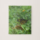Ein vertikales 8"x10" Puzzle, 110 Stücke, mit einem Bild eines wunderschönen Monarchen Butterfly, auf dem Gras liegt.