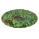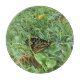 Ein kreisförmiges, 12 Zoll großes, dekoratives Glas-Schneidebrett, mit einem Bild eines wunderschönen Monarchen-Schmetterlings, das im Gras liegt.