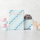 Ein Muster von farbenfrohen Zickzacklinien. Dieses Bild weist einen weißen Hintergrund mit einem Muster von blauen und weißen Zickzacklinien auf. Das Muster ist symmetrisch und erzeugt ein abstraktes netzartiges Design, das das gesamte Bild umschließt.