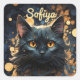 Eine Illustration einer mysteriösen, majestätischen schwarzen Katze mit einem Glitzer von Kreise und Sternen. Sie können den Namen personalisieren.