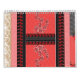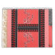 Ein nahes gemustertes, rotes und schwarzes Gewebe Kalender