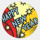 Neujahrsgeschenke und T - Shirt mit der Beschriftung von Happy New Year auf einem kühlen, bunten Hintergrund mit Sternen. Sie können einen Silvester-T - Shirt mit einem Namen für das Jahr oder ein neues Jahr als persönliches Produkt für Sie oder für Freunde und Familie anpassen.