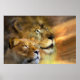 Ein New Dawn Art Poster stammt aus dem Geist der wilden Reihe der originalen Kunst von Carol Cavalaris. Ein Löwe und Löwe, die sich der neuen Morgendämmerung stellen, mit Mut, Liebe und Hoffnung.