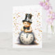 Eine reizende und charmante Abbildung eines Babys, das den Beginn des Neujahrs symbolisiert, in einer Krawatte mit Hut und Bogen gekleidet und auf einer großen Uhr sitzt. Confetti schwebt herum und feiert die Ankunft neuer Anfänge.