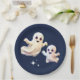 Ein niedlicher Halloween-Tageszeitung-Teller mit der Illustration von zwei niedlichen kleinen Geistern, Sternen und Nachthimmelwolken. Ideal für Halloween Kindergeburtstag Feierlichkeiten im Oktober, die besonders lecker sind, zum ersten Mal Geburtstag oder Babydusche.