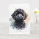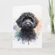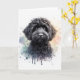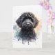 Ein niedliches Bild eines schwarzen Cockapoos mit Aquarellhintergrund. Das Innere wurde leer verlassen, sodass Sie Ihre eigene Formulierung hinzufügen können