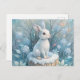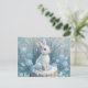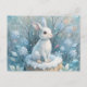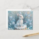 Ein niedlicher Hase, der im Winter auf einem Holzgeländer sitzt