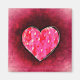 Eine niedliche, rosa Herzhand, die mit einer Kontur mit weißem Schriftzeichen gezeichnet wurde. Das Innere des Herzens weist zufällige rosa, rote und weiße Markierungen auf. Der Hintergrund hat eine dicke Leinwand und ein verblasstes Grunge-Design.