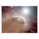 Ein O-Stern direkt hinter einem jungen, cooleren Stern und seiner wirbelnden Scheibe planetsbildenden Materials, das von Künstlern vorgestellt wird.