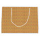 Ein orangefarbenes, gelbes und braunes symmetrisch große geschenktüte