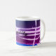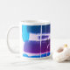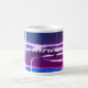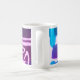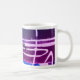 Ein niedlicher abstrakter Aufdruck mit Blues- und Purpurfarben auf einer klassischen, weißen Tasse, mit dem Text "SERENE~CALM~PEACE"