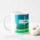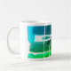 Ein niedlicher abstrakter Ausdruck mit Blau, Grün und Schwarz auf einer klassischen weißen Tasse mit dem Text "Blue Green Bliss"