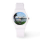 Weiße, sportliche Uhr mit einer schönen Abend-Szene in Hot Springs, Arkansas am Ouachita River. Wer möchte auf dieser Hängematte sitzen und den Ausblick genießen? Suchen Sie weitere Produkte? Besuchen Sie meinen Laden: http://www.zazzle.com/timelessmomentsphtgy Foto wurde von Jennifer White mit Timeless Moments Fotografy aufgenommen. Alle Bilder sind urheberrechtlich geschützt.