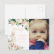 Sweet Aquarellbunny und Blumengrün danke Postcard in einem sanften Rosa und Imitat goldfarben Thema. Auf einer Seite befindet sich eine individuell anpassbare Fotovorlage! Lieblich und niedlich für den ersten Geburtstag deines Kleinen!