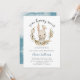 Niedliche Babydusche-Einladungskarte mit Aquarellbild eines Kaninchens mit Grün und blauem Blumenkranz. Im Text steht: "Ein sonniger süß ist unterwegs."