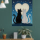 Ein paar Katzen in Liebe unter dem Mond Poster