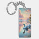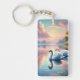 Ein Paar Schwäne, die auf einem ruhigen See gleite Schlüsselanhänger