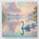 Ein Paar Schwäne, die auf einem ruhigen See gleite Steinuntersetzer