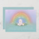 Original Illustration eines Mutter- oder Vater- und Babyhasen auf einer Wiese von Blume mit Gelbvogel und Regenbogen dahinter. Passen Sie den Text für Ihre Veranstaltung zum ersten Geburtstag oder für jedes Alter oder jede Babydusche an; Baby Dusche Vorlage auch in meinem Shop erhältlich