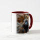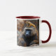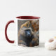 Ein Pavian mit einem Eichhörnchen auf seinem Kopf. Tasse