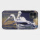 Im Originalfoto von MaeFlowers auf diesem iPhone 11 Fall sehen wir zwei braune Pelikane im Wasser eines Kanals. Der Vogel im Vordergrund zieht ab, sein Kopf dehnt sich aus, seine Flügel verschwimmen an den Seiten, und seine Füße dehnten sich rückwärts aus, während sie das Wasser sprengen. Der zweite Pelikan, der noch im Wasser sitzt, scheint Sprichwort zum ersten Vogel zu sein, Go for it! Im Hintergrund des Fotos sieht man die Wand des Kanals oben, die sich in goldbraunen Farbtönen im Wasser widerspiegelt, die sich in Grüntöne und Blues vermischt und das fliegende Pelikan in den Wellen reflektiert. Diese wilden Vögel sind unterwegs zu erkunden.