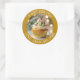 Ein süßes Weihnachts-Aufkleber-Etikett mit einem Vanille-Cupcake in einer goldenen Umhüllung, Vanille-Frosting und Streuseln mit roten und grünen Streuseln. Kleben Sie es auf Ihren hausgemachten Teller mit Cupcakes!