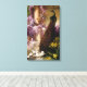Ein Pfau und Tauben in einem Garten ummantelte Lei Leinwanddruck