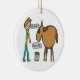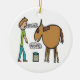 Das von einem Bauer illustrierte Sprichwort, das sein Pferd zum Trinken anregt, zeigt das humorvolle Lead A Horse To Water Design. Das Pferd sieht das Wasser und sagt "Nope". Illustrierter Pferdeausdruck in Form von Cartoon.